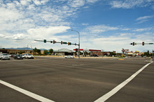 It does not allow any left turns at the main intersection. Motorists wanting to turn left must go straight through the intersection and make a U-turn at a special intersection with a signal a few hundred feet down the road.