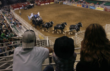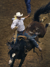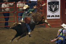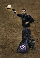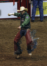 In all, five of the 11 competitors in the saddle bronc competition failed to post a score in the first go-around. Joaquin Real of Woody, Calif., and Jade Blackwell of Rapid City, S.D., took the lead after the opening round with identical 81s.