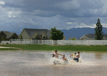 One of the hardest-hit areas was the Equestrian Pointe neighborhood, where members of the LDS Church's Cedar City 11th Ward worked for about three hours on Sunday morning to remove water and begin repairs to 19 homes, according to Tyler Albrecht, the ward's bishop. He said at least five basements were destroyed.