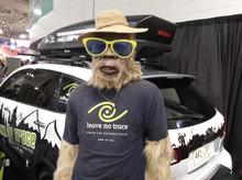 When you start to look like this, it's time to leave the convention and go home. (This Bigfoot is the mascot of Leave No Trace, a nonprofit group encouraging ethical outdoor behavior, at its display at the Outdoor Retailers Summer Market at the Salt Palace.)