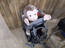 The Man in the Yellow Hat is getting careless in his old age. (This child carrier was on display at the Osprey Packs booth at the Outdoor Retailers Summer Market in the Salt Palace.)