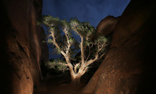 An old juniper tree finds refuge to thrive within the sandstone walls of Arches Natio