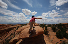 Teo Droguett, 8, steps into the vast landscape that delights visitors from around the world every year at Arches National Park.