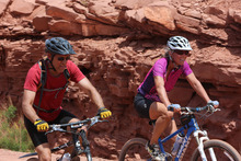 Mountain bikers Andy and Marcia Walker of Sandy at the end of their 75-mile ride on the White Rim Trail in Canyonlands National Park in May 2013.