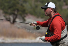 Darren Bowcutt, head river guide for Western Rivers Fly Fisher, tries for perfect placement in hopes of attracting a fish from the shores of the Green River in April of 2013.