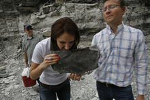 France breaks some shale apart and the pieces emit the odor of petroleum, a potentially lucrative smell that has been breaking the hearts of prospectors for decades.