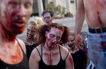 Sunday's Zombie Walk announced Friday that in lieu of a cover charge, it will accept donations to the Utah Food Bank. It begins at 7 p.m. and organizers estimate that it will draw between 5,000 and 10,000 zombies and spectators. The walk starts at Pioneer Park.