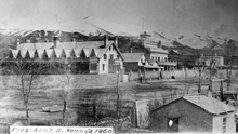 The Lion and Beehive Houses on S. Temple, Brigham's Street, in Salt Lake City, 1860.