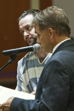 Nathan Sloop's defense lawyer Richard Mauro listens during the arraignment at Davis County Justice Court Tuesday August 13, 2013. Sloop, 34, pleaded not guilty on Tuesday to felony counts of aggravated murder, intentionally inflicting serious injury on a child, obstructing justice and abuse or desecration of a human body. Sloop will be tried in the 2010 death of his 4-year-old stepson Ethan Stacy on March 17 of next year.