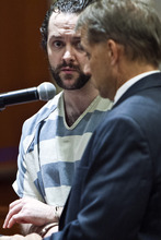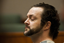Nathan Sloop listens during his arraignment at Davis County Justice Court Tuesday August 13, 2013. Sloop, 34, pleaded not guilty on Tuesday to felony counts of aggravated murder, intentionally inflicting serious injury on a child, obstructing justice and abuse or desecration of a human body. Sloop will be tried in the 2010 death of his 4-year-old stepson Ethan Stacy on March 17 of next year.