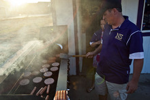 In response, community members grilled hamburgers and hotdogs Thursday night and sold them. Vernon said she bought enough food for 200 and expected to sell it out. As people lined up many of them dropping off checks and cash for far more than the price of the food Vernon praised the community and said the response "was awesome."