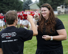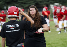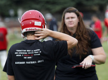 Bailey, a trainer at American Fork High School for the past 16 years, knows that concussions can happen in any sport game or practice. She's already diagnosed three in the two days of padded practice.