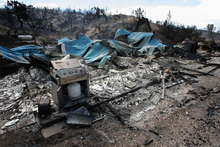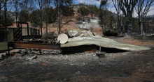 The only thing left of its two structures Saturday was a blue corrugated roof lying mangled on a cinder-block foundation. In the manufactured home community, flames destroyed units parked on the north side, but spared most of those parked on the south side, even though a power line fell on top of them.