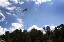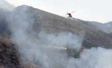 The fire's north and east sides were actively burning in steep terrain Saturday, filling Tooele Valley with smoke. Helicopters ferried water in 80-gallon buckets from springs and reservoirs in Skull Valley to hotspots on the mountain ridges and along the northern edge of the fire near Iosepa. The fire has entered Vickory, Hickman and Big Hollow canyons on the mountains' east side.