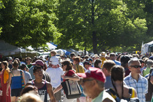 Each Saturday morning during the summer harvest season, nicely dressed shoppers with strollers and dogs roam the park's Farmers Market seeking the healthiest foods money can buy.