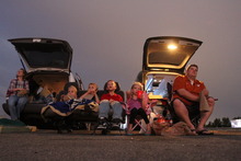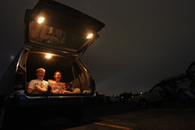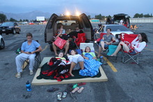 Summer nights • Amelia Tupouniua and Hailey Hardy, seniors at Kearns High School, came recently for their first drive-in showing. They took to Twitter earlier in the evening, sending an open invite to join them for "The Smurfs 2." Some members of their drill team showed up.