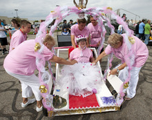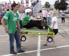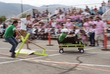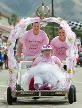 The princesses' competitors had just as much fun and everyone made it to the end of the race, despite a mishap involving the entry from Clearfield High School. As the car holding school janitor Jeff Weston was being pushed down the track, it suddenly lost a wheel and veered off course.