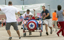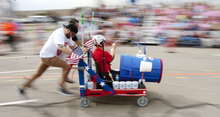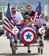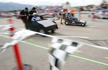 Layton • The fifth annual Pallet Grand Prix on Friday had all the thrills and spills of a professional race: Cars zooming down the track, drivers focused on beating their competitors, a vehicle veering off course, spectators cheering wildly and excited winners crossing the finish line.