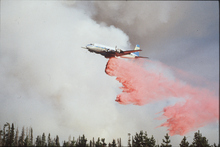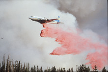 A plane dumps retardant during the fires at Yellowstone National Park in 1988.