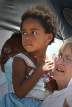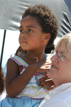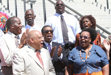 The commemoration, which lasted about 40 minutes under a blue sky, white clouds and a half moon, featured the Calvary Baptist Choir singing "Amazing Grace" and "This Little Light of Mine" and a tender rendition of "We Shall Overcome."