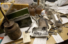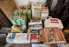 A work bench is covered with belongings in the former home of Oscar and Beverly Rowland in Salt Lake City Wednesday Aug. 27, 2013. The Avenues home has sat vacant for three years because the Rowlands' children were intimidated about how to handle its vast contents. The family's first attempt at unloading Oscar's vast collection will be Sept. 6-8, and it will take up a full eight rooms of his Avenues house. What they sell will make room for them to explore other rooms full of yet-to-be explored boxes.