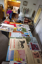 Robert Rowland, his daughter, Lisa Rowland, and niece Tiffany Morris sort through posters in the former home of his parents, Oscar and Beverly Rowland, in Salt Lake City Wednesday Aug. 27, 2013. The Avenues home has sat vacant for three years because the Rowlands' children were intimidated about how to handle its contents. The family's first attempt at unloading Oscar's vast collection will be Sept. 6-8, and it will take up a full eight rooms of his Avenues house. What they sell will make room for them to explore other rooms full of yet-to-be explored boxes.