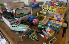 Metal toys are neatly arranged in the former home of Oscar and Beverly Rowland in Salt Lake City Wednesday Aug. 27, 2013. The Avenues home has sat vacant for three years because the Rowlands' children were intimidated about how to handle its vast contents. The family's first attempt at unloading Oscar's vast collection will be Sept. 6-8, and it will take up a full eight rooms of his Avenues house. What they sell will make room for them to explore other rooms full of yet-to-be explored boxes.