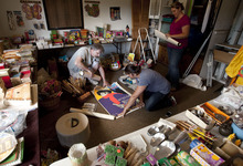 Painting supplies in the former home of Oscar and Beverly Rowland in Salt Lake City Wednesday Aug. 27, 2013. The Avenues home has sat vacant for three years because the Rowlands' children were intimidated about how to handle its contents. The family's first attempt at unloading Oscar's vast collection will be Sept. 6-8, and it will take up a full eight rooms of his Avenues house. What they sell will make room for them to explore other rooms full of yet-to-be explored boxes.