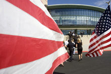 Between speakers the arena went completely silent, the loudest sounds coming from the hissing air conditioner and the cooing of an infant high in the stands.