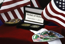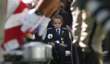 Johnson's father, Randy Johnson, wearing an American flag tie, also drew smiles from the crowd when he read aloud his son's 6th grade autobiography. In the paper, the boy wrote with surprising eloquence and specificity: he wanted to live in a rambler-style home someday, hoped to reside in Wyoming "by the fireworks," and sometimes thought his little brother was annoying. But even at that young age, Johnson knew what kind of career he wanted.