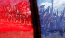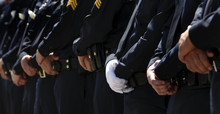 In the stands, a salt-and-pepper smattering of white and black uniformed cops from all over the state stood silently at attention, their arms raised in salute.