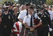 Officers conducted a flag folding and presentation ceremony for Johnson's wife, son, mother and mother-in-law. A gun salute and the playing of Taps were followed by the traditional bagpipe performance of "Amazing Grace."