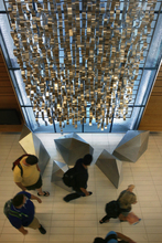 A waterfall sculpture inside the he new Spencer Fox Eccles Business Building at the University of Utah, Thursday, September 5, 2013.