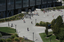 The view looking at the Library Plaza from the new Spencer Fox Eccles Business Building at the University of Utah, Thursday, September 5, 2013.