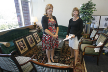 Christine Botosan Assoc. Dean / Graduate Affairs, left, and Heidi DeWitt Woodbury Assistant Dean / External Relations, examine the progress of the recreation of the First Security board room inside the new Spencer Fox Eccles Business Building at the University of Utah, Thursday, September 5, 2013.