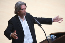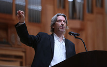 "Take simple actions," he told the audience, largely students. "In this new world of 21st century activism. … tweet, blog, Facebook about things you care about. … Get in the game."