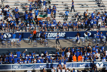 BYU fans watch as the time ticks away, as BYU got beat by Utah 20-13, at Lavell Edwards Stadium, Saturday, September 21, 2013.