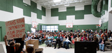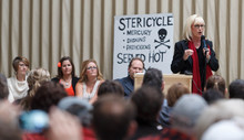 Attending Saturday's town hall were City Council members, Rep. Rebecca Edwards, R-North Salt Lake, and Mayor Len Arave, who faced pointed questions about why he hasn't revoked Stericycle's conditional-use permit.