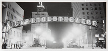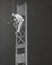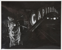 Workers suspended from the sign in front of the Capitol Theatre in this photo dated 1949.