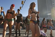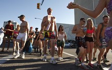 Underwear-clad runners took a jog from Salt Lake City Hall to the Utah Capitol, up State Stre