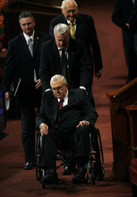 "The scriptures hold the keys to spiritual protection," said Packer, seated while speaking. "Children taught an understanding of the scriptures early in life will come to know the path they should walk and will be more inclined to remain on that path. Those who stray will have the ability to return and, with help, can find their way back."