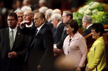 These pressures "have already permitted same-gender marriages in various states and nations," Oaks told 20,000 Mormons gathered in the Conference Center in downtown Salt Lake City and millions more watching worldwide via telecasts and the Internet. "Other pressures would confuse gender or homogenize those differences between men and women that are essential to accomplish God's great plan of happiness."