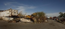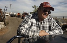 Thornley King looks around a private junkyard that he and his brothers run in a remote slice of Salt Lake City at 7200 West and 2100 South, near Magna. Junk cars are piled high. Cats climb on old tires near a "keep out" sign. Mosquitoes swarm. Next door are other dumps strewn with trash.