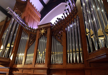 Its organ was moved in the 1960s from near the west transept to the choir loft, but its pipes covered the original rose window. Two years ago, the church commissioned construction of a new organ, which was built out farther, revealing the rose window again.