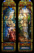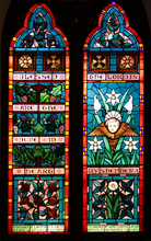One parishioner, Wirth says, gathered up all the shards from the windows, put them in a suitcase and carried them by train to New York, where they were painstakingly reassembled and ultimately reinstalled. There are hints of the damage in the window on the left, which depicts the "Appearance of the Angel to the Three Marys."