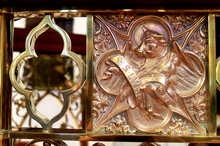 The dean's chair, for example, carries the image of a lion, which represents the coming of the kingdom of God. His kneeler has the cross of Christ and the flame of the Holy Spirit.