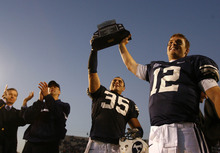 Since Hall left, BYU quarterbacks have completed an average of 58 percent of their passes. Hall, a 65-percent passer in his career, was 32-7 as the starter; since then, the Cougars have gone 28-16. Against big-time defenses, though, they've struggled, notwithstanding Friday's 31-14 win over Utah State. The Aggies and Cougars, ironically, are tied at No. 24 in the country in total defense, both giving up only 335.8 yards per game.