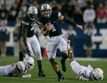 Which brings us to sophomore Taysom Hill, who in just seven career starts has already established himself as the best running quarterback not named Eldon Fortie ever in Provo, but has yet to prove he can complete passes consistently. Hill's completion percentage this season is 43.3 percent, but only after going 14 for 19 against Middle Tennessee State and 17 for 32 against Utah State to get himself out of the 33-percent range.