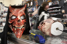 Local companies such as Mask Costumes, which has two stores in Salt Lake County that are open year-round, must compete with the chains. That is not always easy.