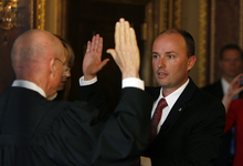The state's new No. 2, a 38-year-old attorney and vice president of a family-owned rural telecommunications company, was sworn in later Wednesday by U.S. District Judge Ted Stewart for whom Cox clerked after law school in a ceremony in the Capitol Gold Room.